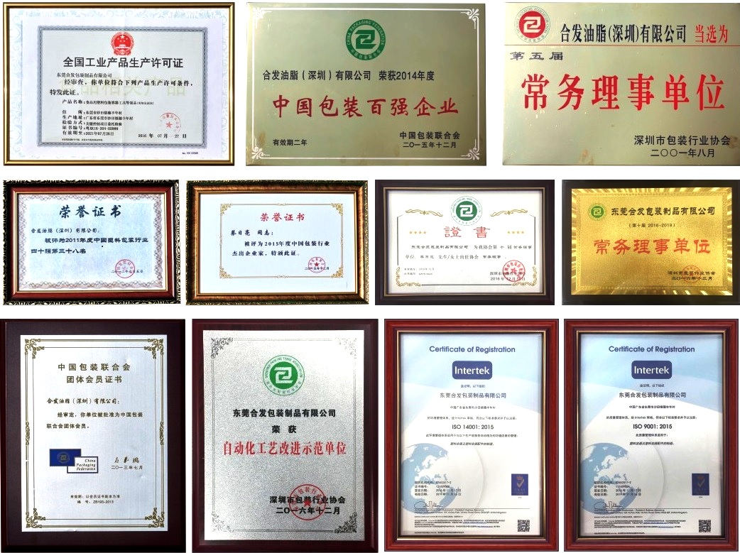 Since 2001, the company has been awarded the Executive Official Unit of the Shenzhen Packaging Association. In 2012, the company was one of the forty winners of the China Plastic Packaging Field. In 2015, the company won the title of being China’s Hundred-Enterprise in packa.